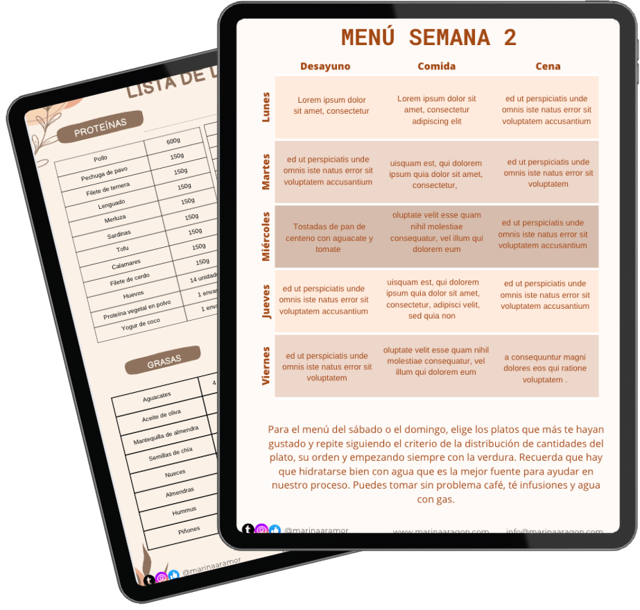 Guías descargables y plantillas: Menús, rutinas y listas de alimentos clave.